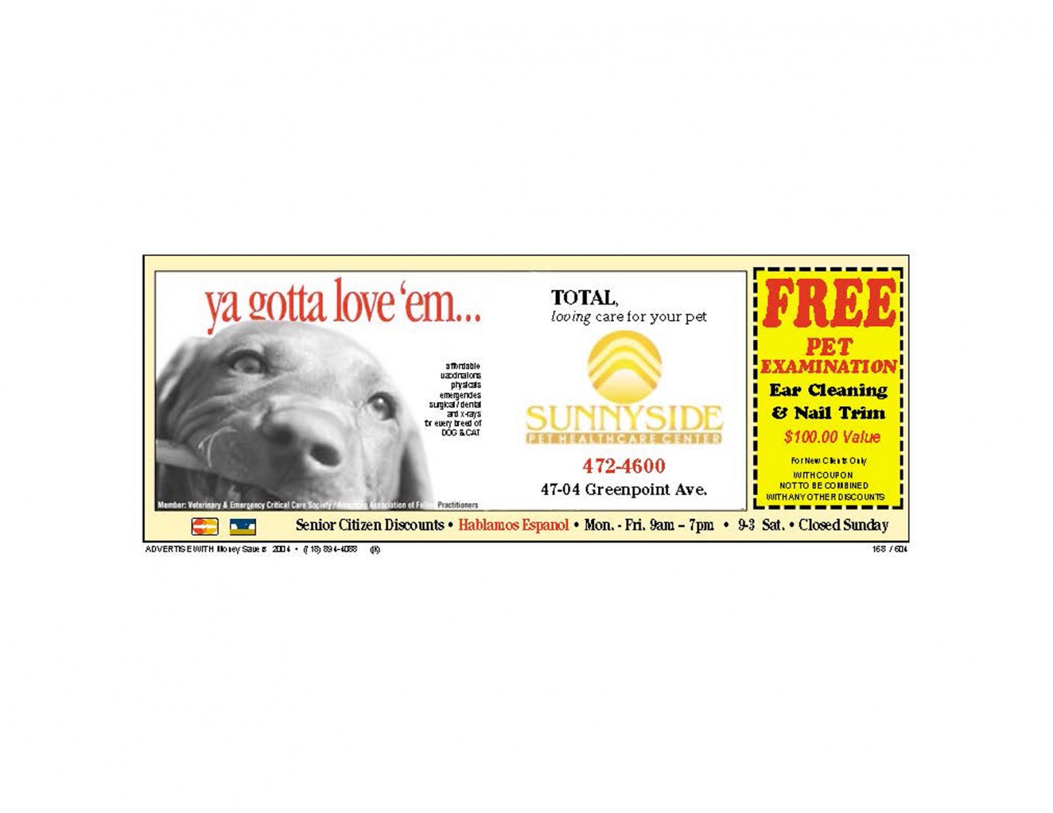 Get a free examination, nail trim and ear cleaning for your pet